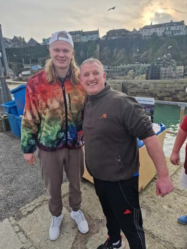 在休息時間,哈蘭德前往距離曼徹斯特家中約315英里的康沃爾紐基進(jìn)行海釣。盡管哈蘭德沒有在現(xiàn)場逗留太長時間,但他仍抽空與球迷合影,甚至為一位曼城球迷在球衣上簽名。