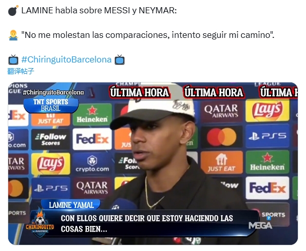 3月12日訊 歐冠1/8決賽次回合,巴薩3-1戰(zhàn)勝本菲卡,總比分4-1晉級(jí)。賽后在接受采訪(fǎng)時(shí),亞馬爾被問(wèn)到自己和梅西、內(nèi)馬爾的對(duì)比一事。