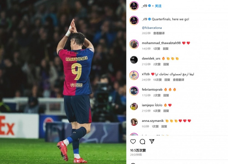 他也在賽后通過社媒曬出自己的比賽照,并配文:“歐冠八強戰(zhàn),我們來了!@巴薩俱樂部”。
