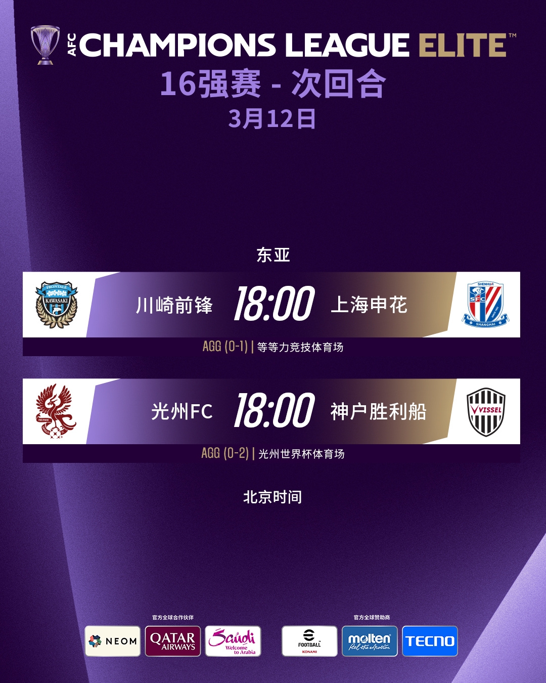 03月12日訊 亞冠精英聯(lián)賽1/8決賽將進行最后兩場較量,上海申花客場挑戰(zhàn)川崎前鋒的比賽將決定中超聯(lián)賽的亞冠名額分配。
