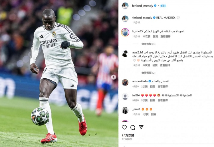 費(fèi)蘭-門迪曬出自己的比賽照,并配文:“皇家馬德里????”
