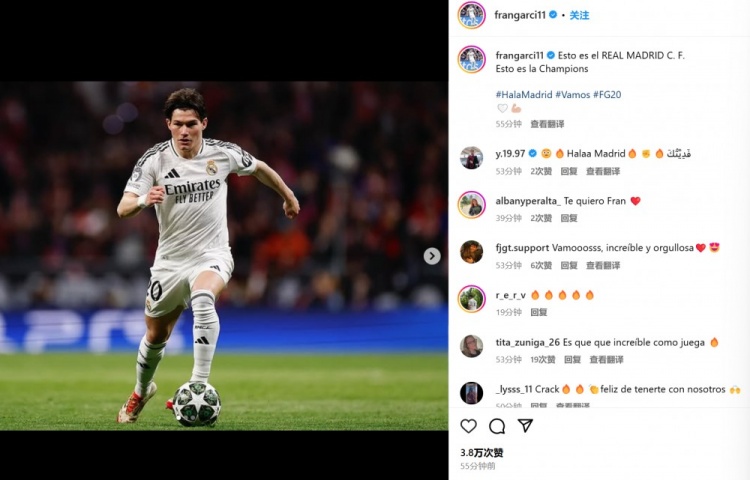 弗蘭-加西亞同樣曬出比賽照,并配文:“這就是皇家馬德里!這就是冠軍!”