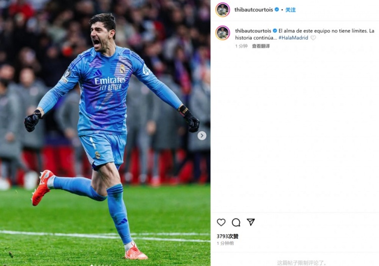 3月13日訊 皇馬在本輪歐冠點球淘汰馬競,庫爾圖瓦面對老東家表現(xiàn)神勇做出7次撲救,堪稱全場最佳。他也在賽后通過社媒曬出自己的狂奔慶祝照,并配文:“這支球隊的意志力永無止境!故事還在繼續(xù)……” 標簽: 足球 西甲 皇家馬德里 馬德里競技 歐冠