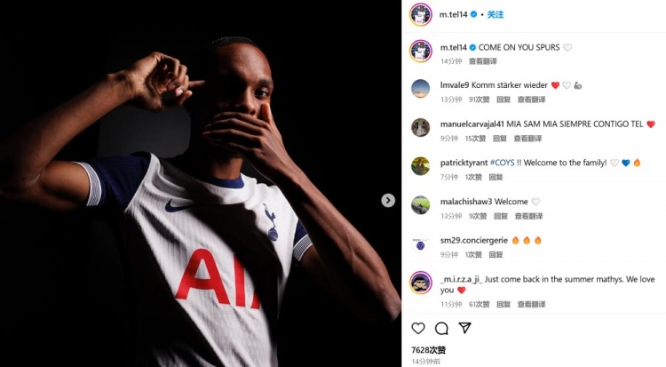 特爾在今日通過社媒曬出自己的定妝照,并配文:“熱刺加油?。–OYS)”。據(jù)悉列維專程飛赴慕尼黑游說這位法國小將,并且為租借5個(gè)月而支付了高達(dá)1000萬歐租借費(fèi)。