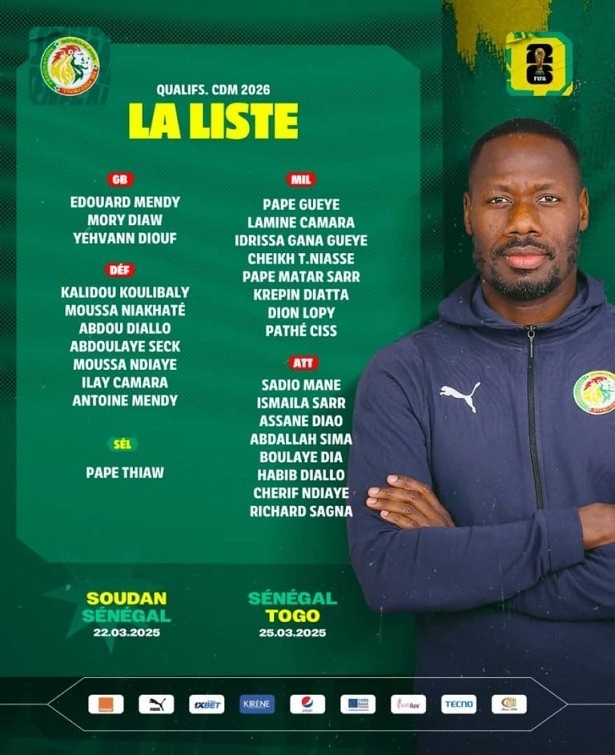 當(dāng)?shù)貢r間本周四,塞內(nèi)加爾國家隊公布了新一期大名單,備戰(zhàn)接下來對蘇丹(3月22日)和多哥(3月25日)的兩場世界杯非洲區(qū)預(yù)選賽。其中阿薩內(nèi)-迪奧首次入選塞內(nèi)加爾國家隊。