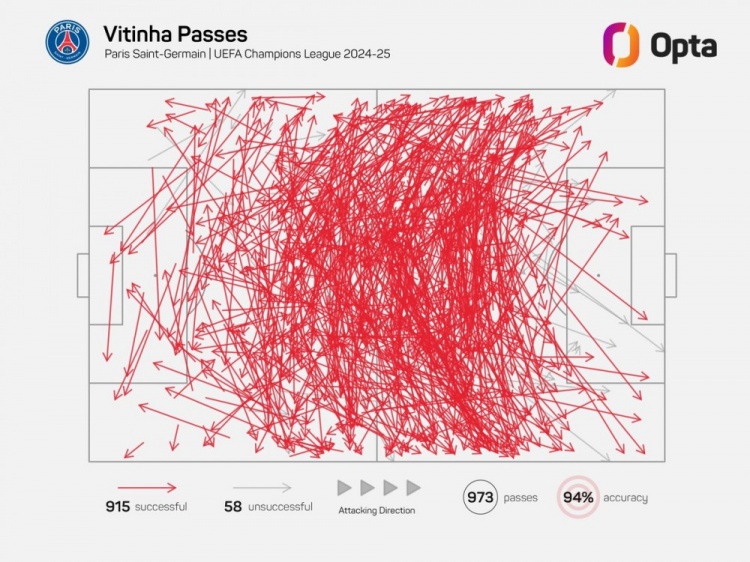 數(shù)據(jù)統(tǒng)計顯示,他本賽季歐冠已經(jīng)成功傳球915次。自03-04賽季以來,只有4名中場的單賽季歐冠成功傳球比他更多: