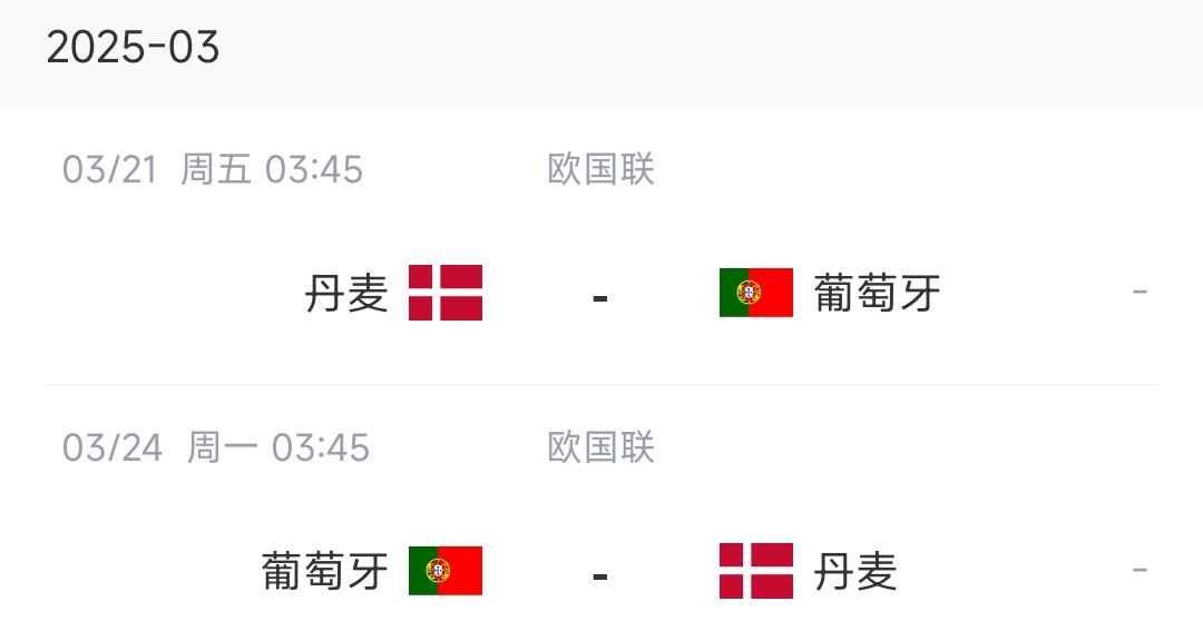3月份國(guó)際比賽日中,葡萄牙將在歐國(guó)聯(lián)1/4決賽迎來與丹麥隊(duì)的兩回合比賽,比賽時(shí)間為3月21日和3月24日,葡萄牙先客后主。