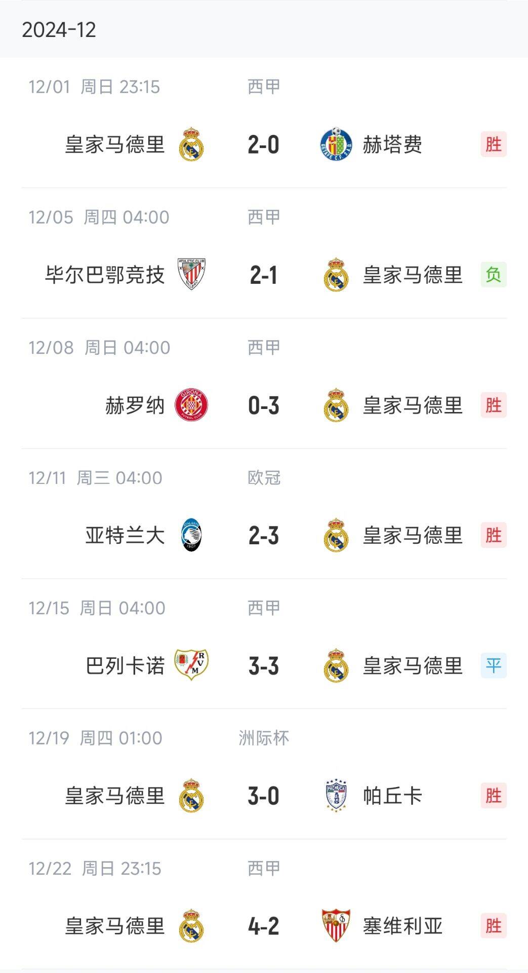 12月是皇馬3天1賽開始的月份,這個(gè)月他們21天內(nèi)打了7場,包括西甲、歐冠和洲際杯。