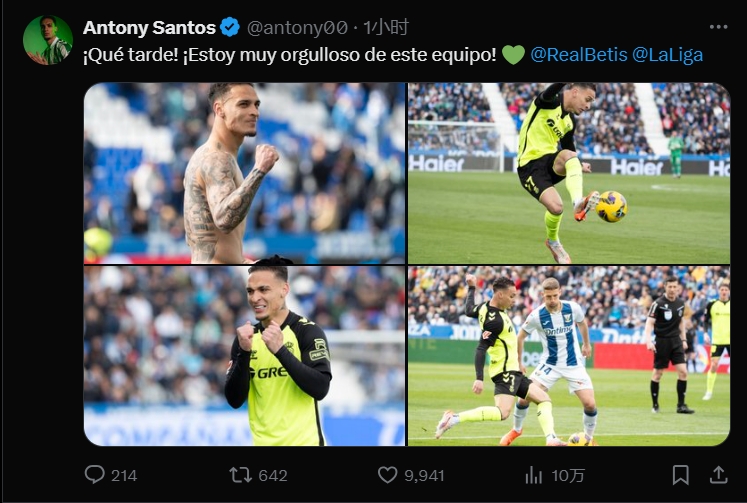安東尼在社媒發(fā)文:“太棒了!我為球隊感到自豪。”