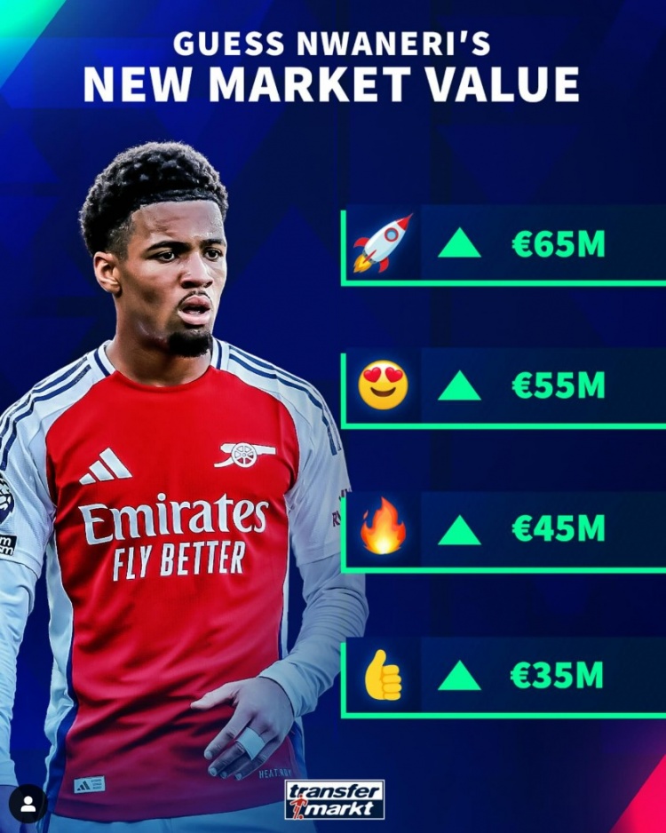 3月17日訊 德轉(zhuǎn)將在明日更新英超球員身價,德轉(zhuǎn)預熱阿森納小將恩瓦內(nèi)里將是身價大漲的球員之一。