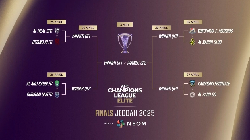 沙特三強的對手僅有勝利將對陣聯賽階段排前三的橫濱水手(第1),新月對陣光州(第4)和國民對陣武里南聯(第6)均為好簽。