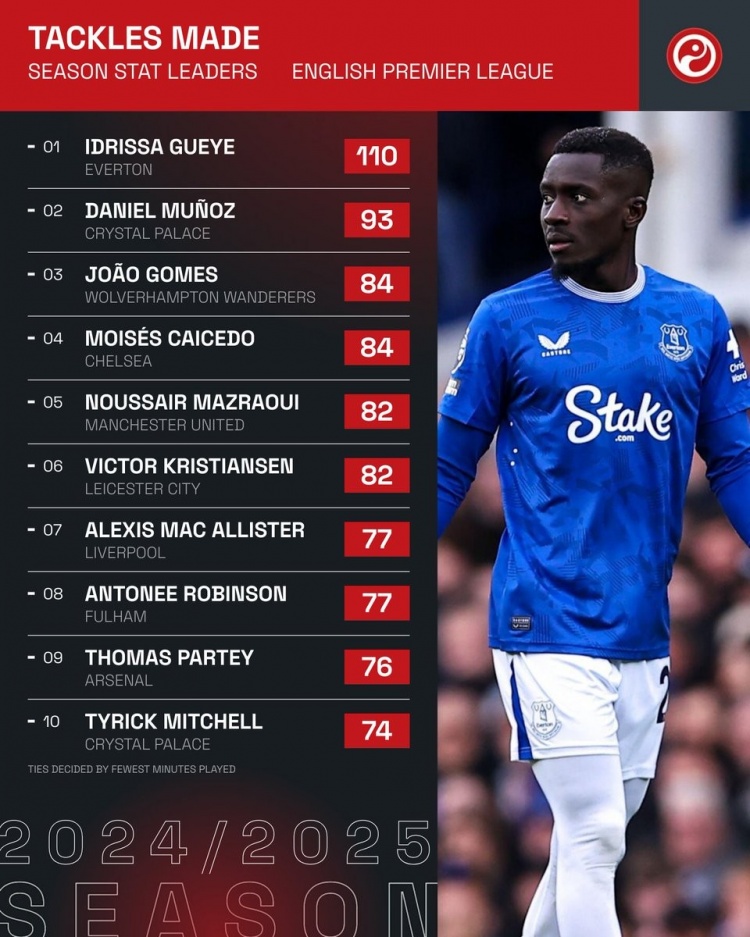 本賽季英超成功搶斷榜: