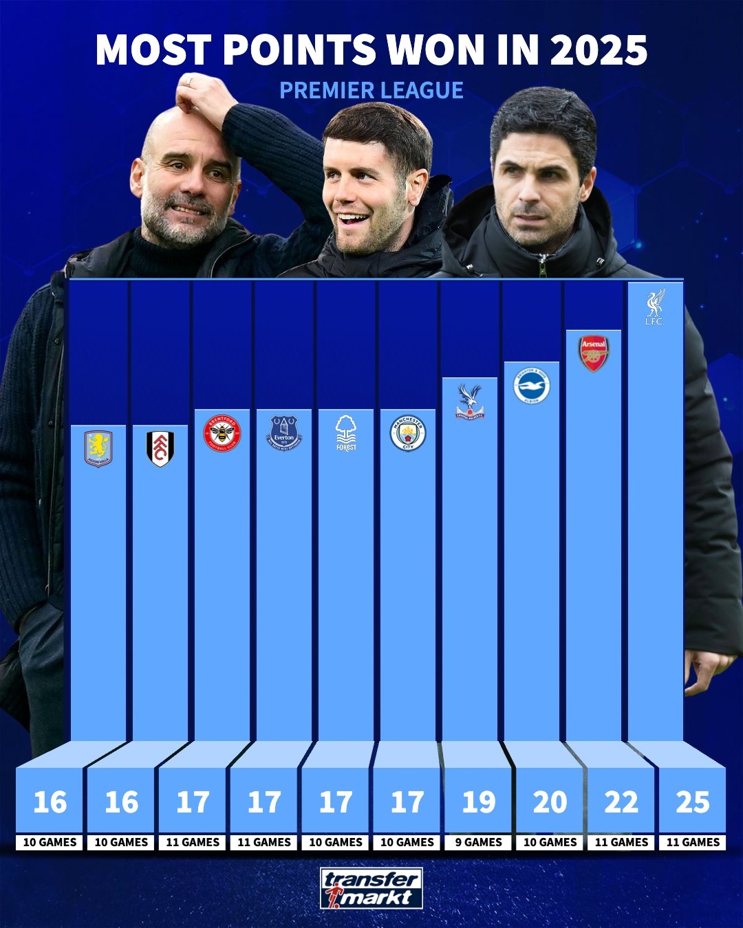 1、利物浦 11場(chǎng)25分