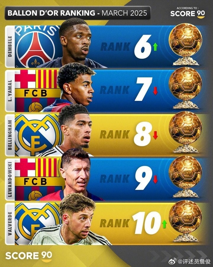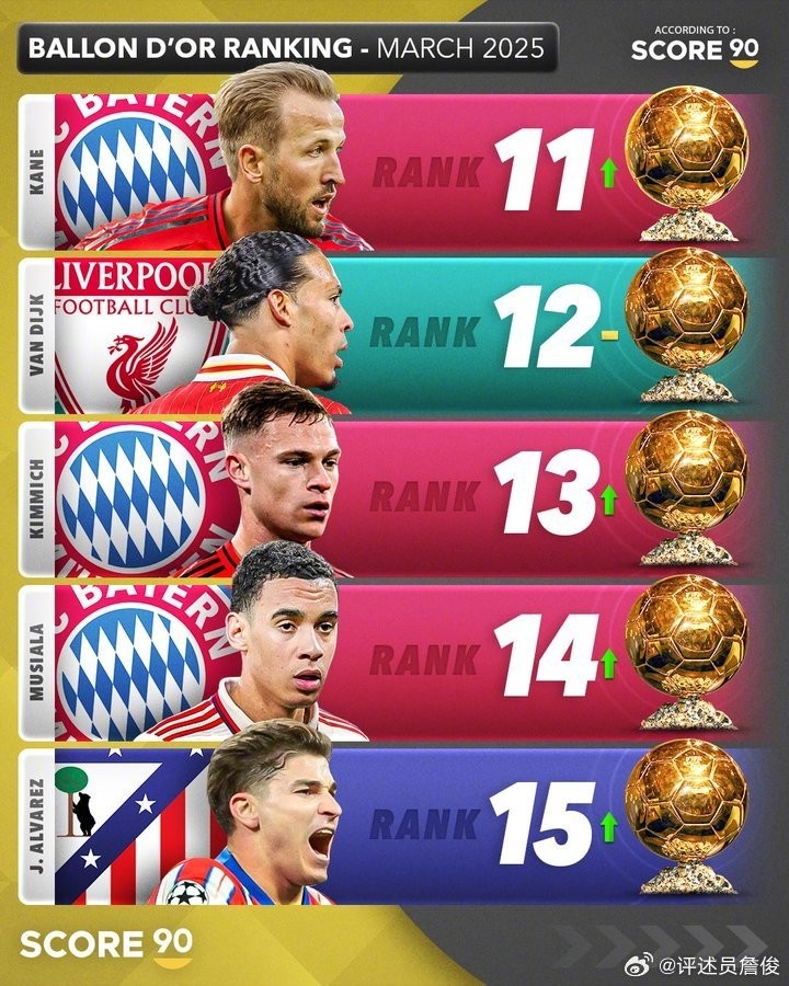 詹俊說(shuō):國(guó)外網(wǎng)站評(píng)分系統(tǒng)中2025年金球獎(jiǎng)熱門人選前十五名。本季已經(jīng)打進(jìn)30球迎來(lái)個(gè)人職業(yè)生涯巔峰的登貝萊,會(huì)不會(huì)是“黑馬”?如果大巴黎本季歐冠最終捧杯的話……