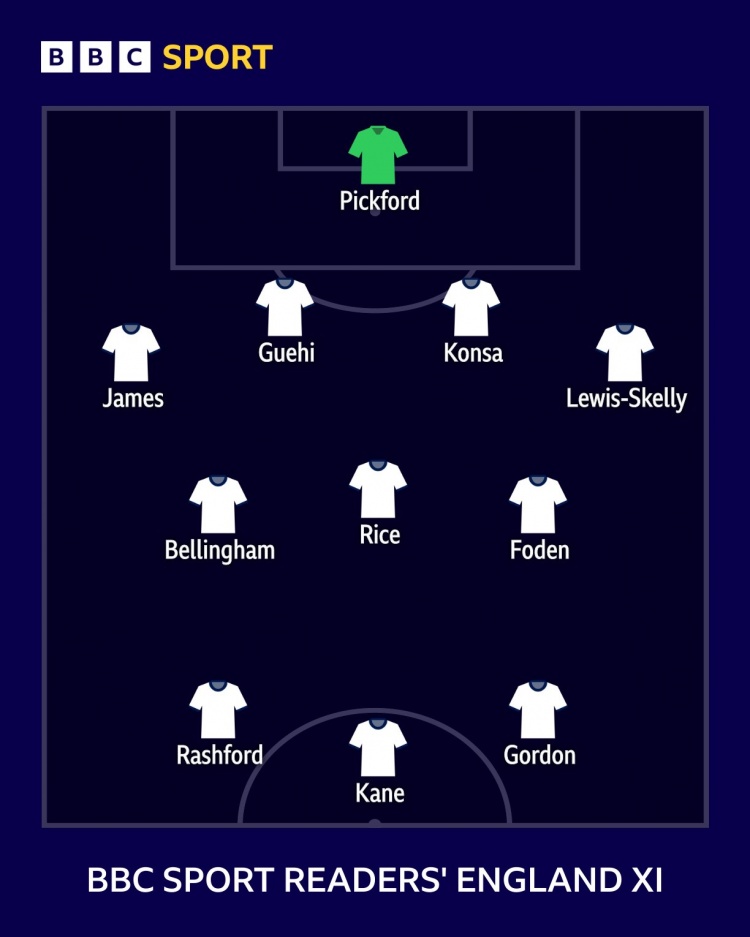 3月21日訊 北京時(shí)間明天凌晨,英格蘭將在世預(yù)賽中主場(chǎng)對(duì)陣阿爾巴尼亞。BBC列出了讀者票選英格蘭隊(duì)首發(fā)陣容,凱恩、拉什福德、戈登組成鋒線,貝林厄姆、賴斯坐鎮(zhèn)中場(chǎng)。