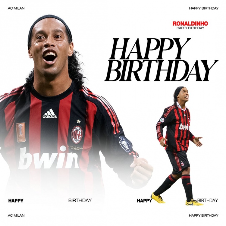3月21日訊 今天是羅納爾迪尼奧的45歲生日,老東家米蘭為他送上祝福。