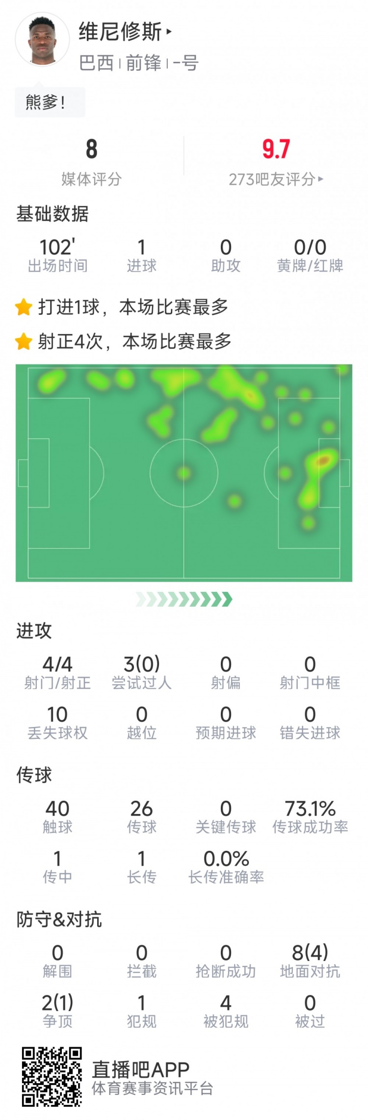 3月21日訊 在本輪世預(yù)賽南美區(qū)比賽,巴西2-1擊敗哥倫比亞,維尼修斯打進(jìn)絕殺,以下為他在本場(chǎng)數(shù)據(jù):