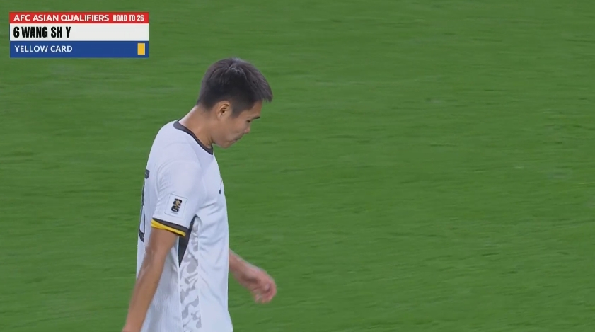 03月21日訊 國足vs沙特第21分鐘,王上源染黃,缺席下輪對陣澳大利亞。