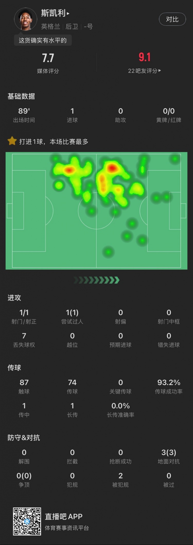 斯凱利本場(chǎng)主要數(shù)據(jù)↓