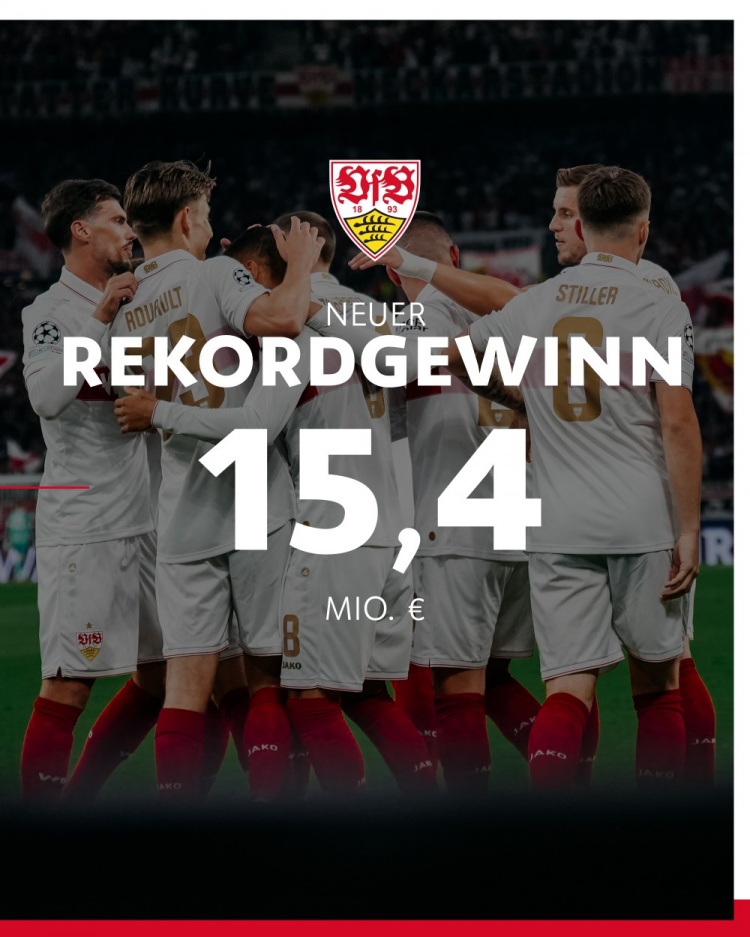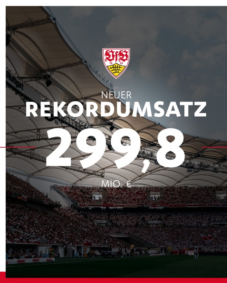 斯圖加特官推寫道:“斯圖加特1893股份公司在2024自然年的總收入為2.998億歐元,創(chuàng)下了俱樂部的歷史新高。同樣重要的是,利潤達到了1540萬歐元,也創(chuàng)下了歷史新高?!?/p>
