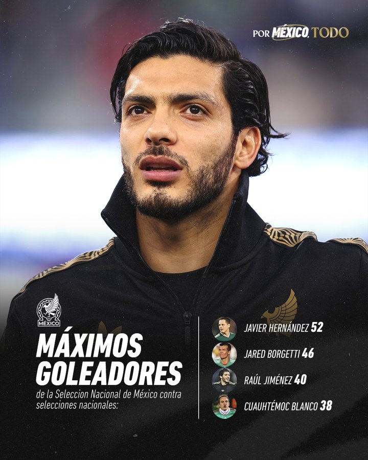 憑借著兩個進(jìn)球,勞爾-希門尼斯以40球超越了夸烏特莫克-布蘭科,現(xiàn)在來到了墨西哥國家隊歷史射手榜第三的位置,僅次于46球的哈雷德-博爾格蒂和52球的“小豌豆”哈維爾-埃爾南德斯。