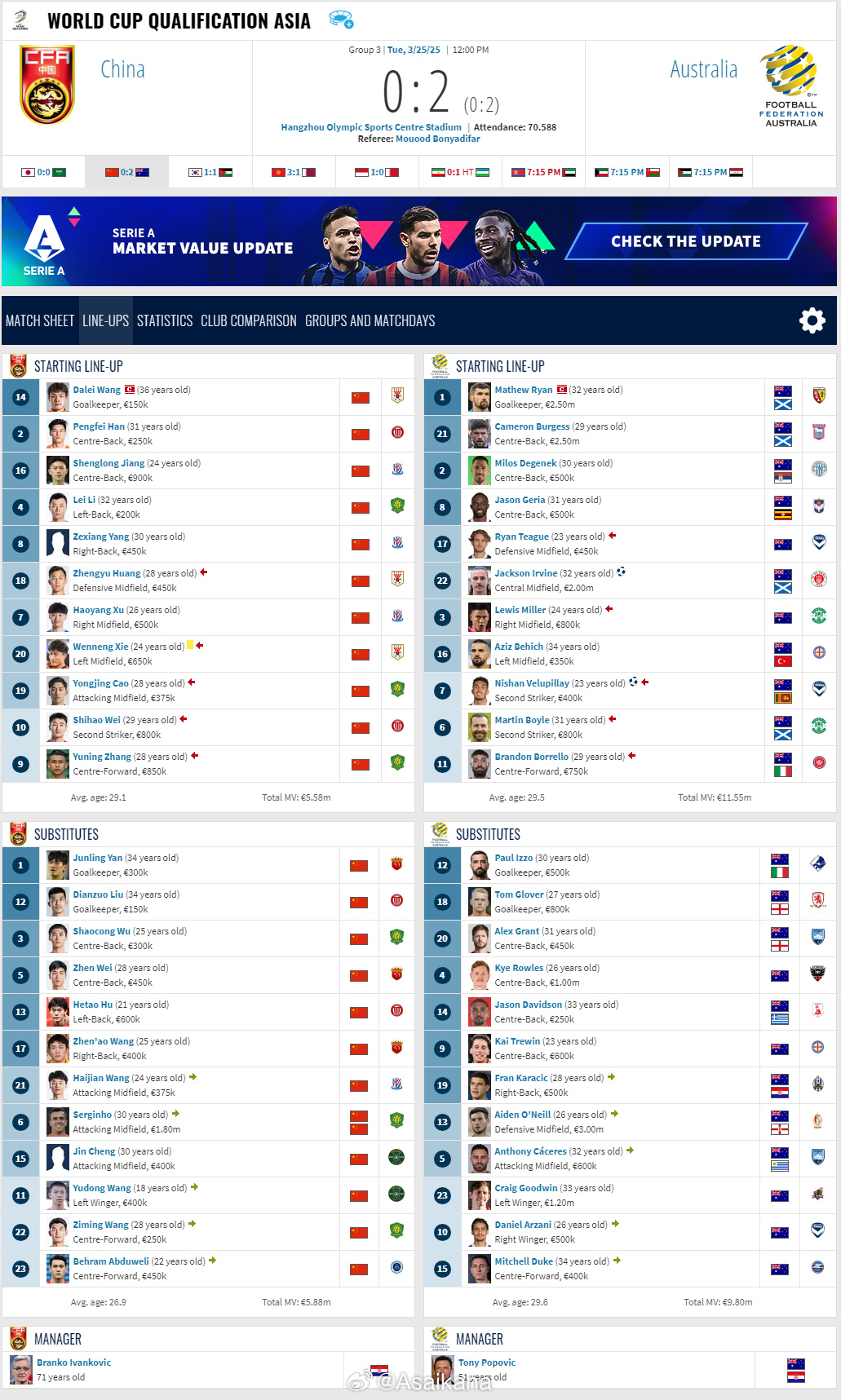 2026年世界杯亞洲區(qū)預(yù)選賽,中國(guó)0-2澳大利亞比賽報(bào)告 ???