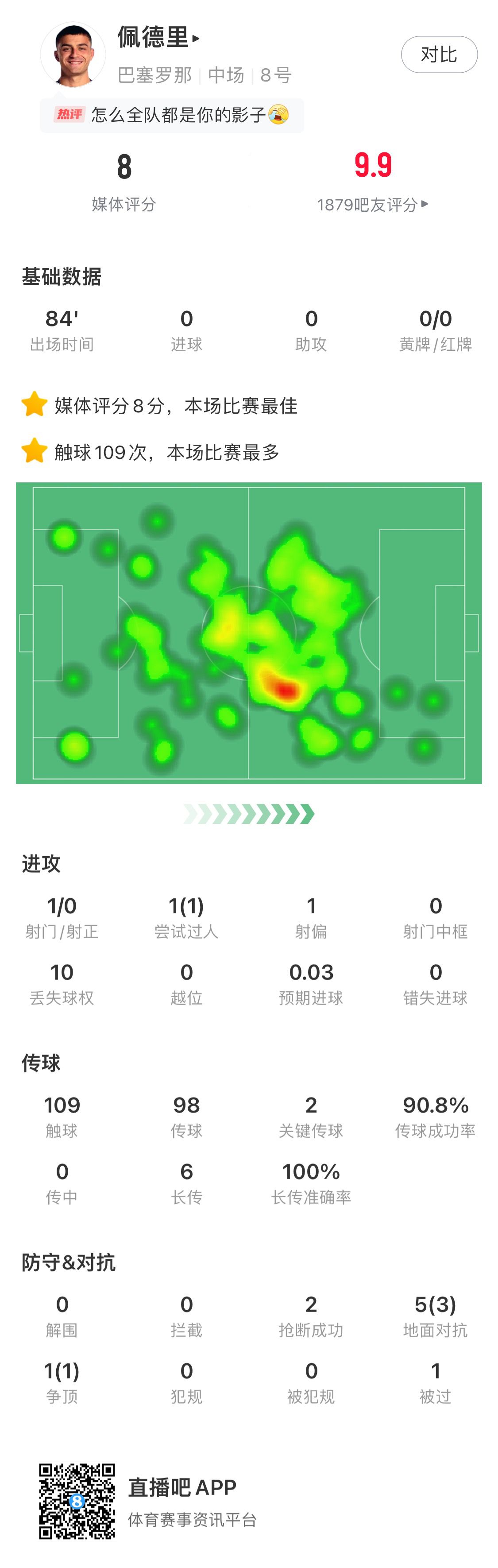 03月28日訊 國際比賽日后,巴薩補賽3-0擊敗奧薩蘇納,佩德里延續(xù)“大師級”表現(xiàn),109次觸球,98次傳球90.8%成功率,2次關鍵傳球,6次長傳100%成功率,2次搶斷成功。