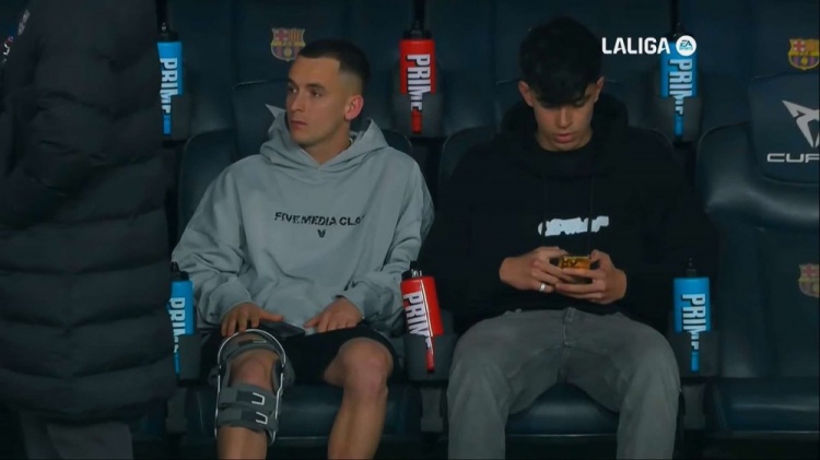 巴薩中場卡薩多本月被確認(rèn)右膝外側(cè)韌帶部分撕裂,接受保守治療,預(yù)計(jì)將傷缺兩個(gè)月,他與另一位傷員伯納爾現(xiàn)場觀看了這場比賽,卡薩多更換發(fā)型、佩戴護(hù)具觀賽。