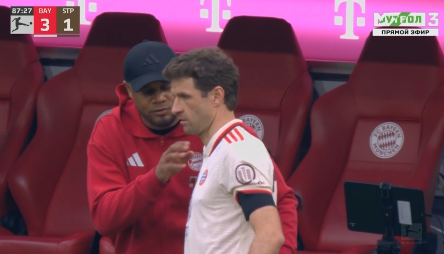 伊藤洋輝是第58分鐘替換格雷羅登場的,拜仁第85分鐘用完了最后的換人名額??着聊嵋裁靼走@一點,他把穆勒叫到場面交代一下站位。