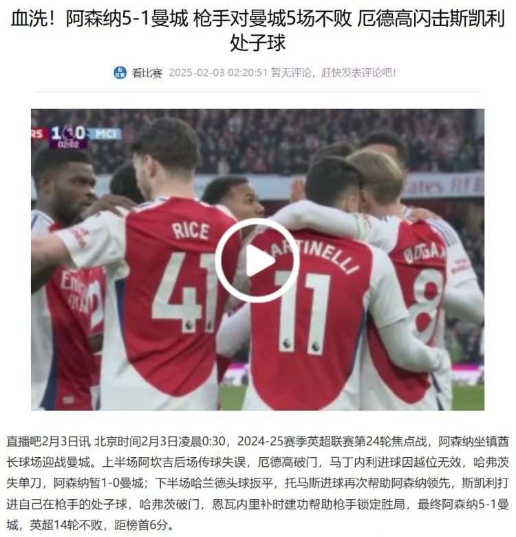 標(biāo)簽: 足球 英超 曼城 阿森納 紐卡斯?fàn)柭?lián)