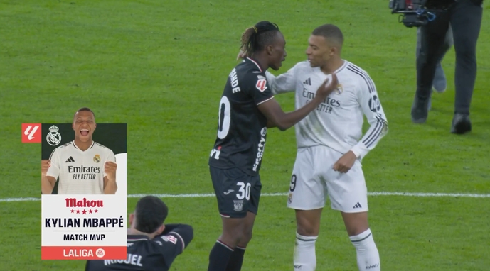 3月30日訊 西甲第29輪比賽,姆巴佩梅開(kāi)二度,幫助皇馬主場(chǎng)3-2擊敗萊加內(nèi)斯,他當(dāng)選本場(chǎng)比賽最佳球員。