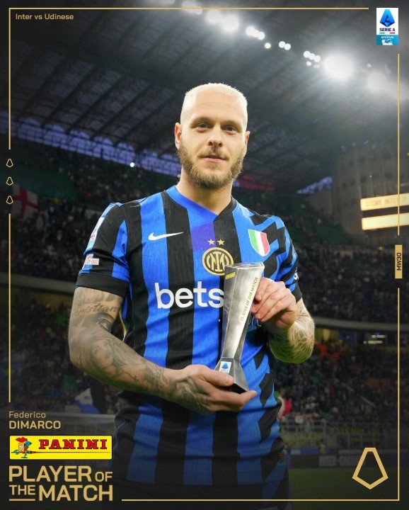 3月31日訊 意甲第30輪,國米2-1烏迪內(nèi)斯。迪馬爾科助攻雙響,賽后意甲聯(lián)賽官方宣布,迪馬爾科當(dāng)選本場比賽最佳球員。
