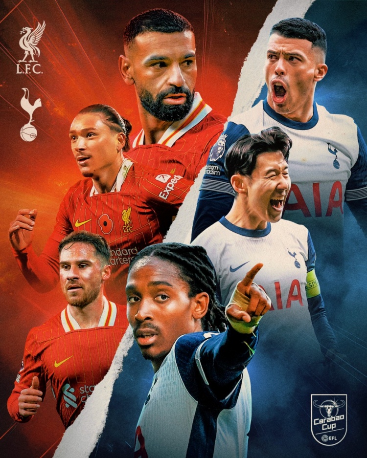 海報(bào)中,孫興慜、波羅以及剛剛復(fù)出的斯賓塞為熱刺出鏡,薩拉赫、努涅斯和麥卡利斯特為利物浦出鏡。