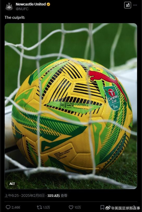 【官方玩梗】聯(lián)賽杯次回合紐卡2-0戰(zhàn)勝阿森納晉級(jí)決賽后,紐卡官推曬聯(lián)賽杯用球,配文:罪魁禍?zhǔn)?/p>