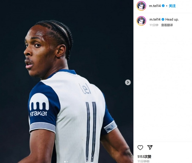 他也在賽后通過社媒曬出自己的比賽照紀(jì)念熱刺首秀,并鼓勵全隊:“抬起頭來?!?/p>