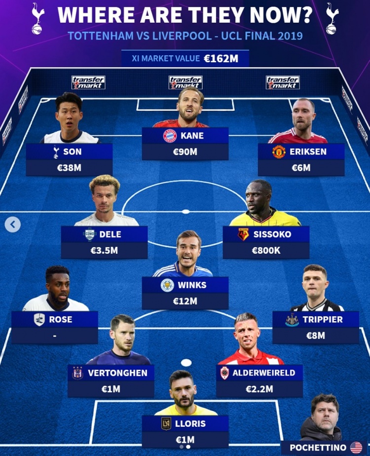 熱刺:僅剩孫興慜一人。丹尼-羅斯已經(jīng)退役。