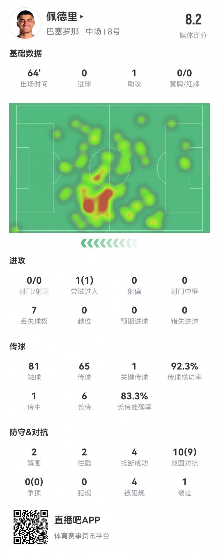 2月7日訊 巴薩在本輪國王杯5-0領(lǐng)先瓦倫西亞,佩德里本場數(shù)據(jù)如下: