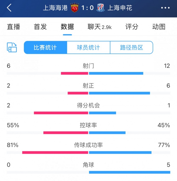 2月7日訊 2025中國(guó)超級(jí)杯賽,上海海港憑借新外援加布里埃爾的破門(mén),在上半場(chǎng)1-0領(lǐng)先申花。半場(chǎng)數(shù)據(jù)方面,落后的申花更有優(yōu)勢(shì),但海港把握機(jī)會(huì)的能力更強(qiáng)。
