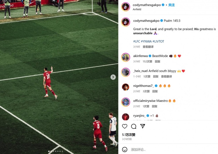 而加克波也曬出自己的比賽照,并附上《圣經(jīng)》中的內(nèi)容:“詩篇145:3。耶和華本為大,該受大贊美,其大無法測度。????????”
