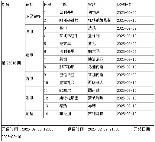 傳足勝負(fù)彩第25018期競(jìng)猜賽事重點(diǎn)關(guān)注豪門球隊(duì):英足總杯賽事中利物浦和熱刺將分別對(duì)陣普利茅斯和維拉,意甲領(lǐng)頭羊那不勒斯在主場(chǎng)面對(duì)烏迪內(nèi)斯,拉齊奧主場(chǎng)迎戰(zhàn)蒙扎。