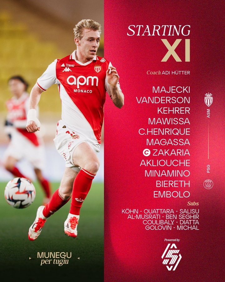 摩納哥替補:庫恩、瓦塔拉、薩利蘇、阿爾穆斯拉蒂、本-塞吉爾、馬馬杜-庫利巴利、迪亞塔、戈洛文、盧卡斯-米哈爾