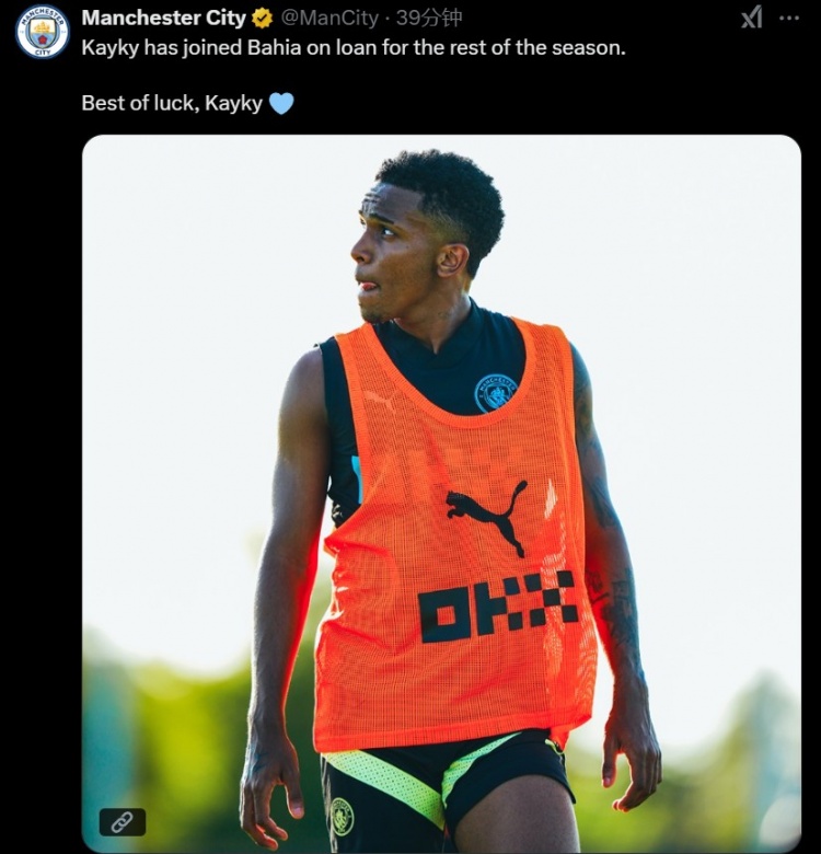 2月8日訊 曼城官方宣布,小將凱基外租巴西俱樂部巴伊亞半個賽季。