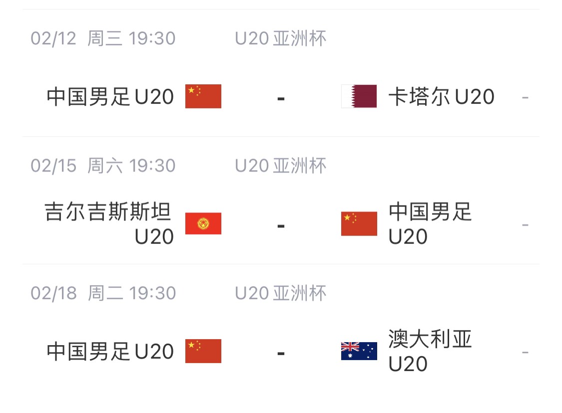 U20亞洲杯中國隊(duì)賽程: