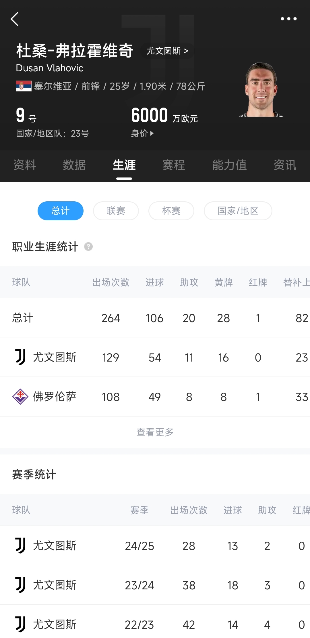2022年冬窗,尤文以8350萬歐元的轉(zhuǎn)會(huì)費(fèi)從佛羅倫薩簽下弗拉霍維奇,迄今弗拉霍維奇代表尤文出戰(zhàn)129場(chǎng)比賽,貢獻(xiàn)54球11助。目前弗拉霍維奇在尤文的稅后年薪為1200萬歐元,高居隊(duì)內(nèi)薪資榜首(第二的布雷默500萬歐元)。