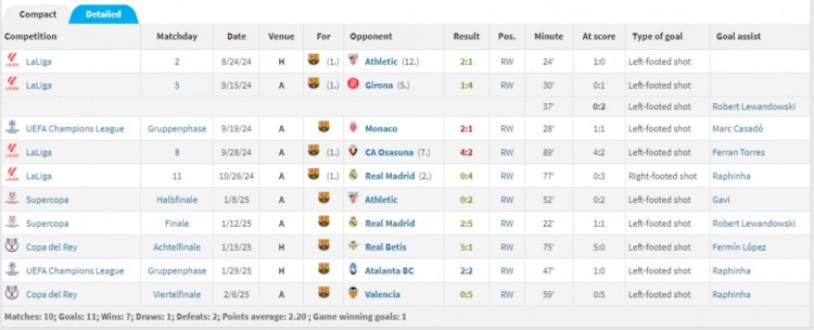 亞馬爾這段時間在其他賽場倒是取得了不少進球,超級杯他分別在半決賽和決賽破門、歐冠也打進了一球、國王杯也有兩場比賽破門。
