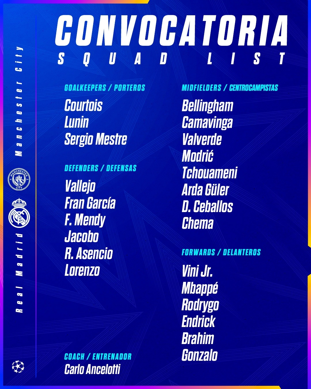 2月10日訊 皇馬將在本輪歐冠附加賽首回合作客挑戰(zhàn)曼城,他們也更新了本場(chǎng)比賽的大名單情況,中場(chǎng)小將切瑪頂替了此前受傷的巴斯克斯。