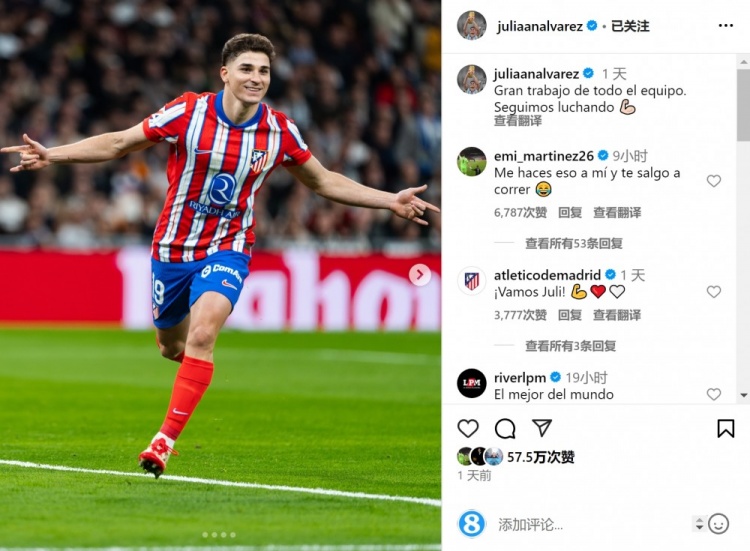2月10日訊 西甲第23輪比賽,阿爾瓦雷斯勺子點球破門,幫助馬競客場1-1戰(zhàn)平皇馬。阿爾瓦雷斯社媒曬照,阿根廷門將大馬丁留言調(diào)侃道:“如果你敢這樣對我,我會追著你跑。” 標簽: 足球 西甲 馬德里競技 英超 阿斯頓維拉