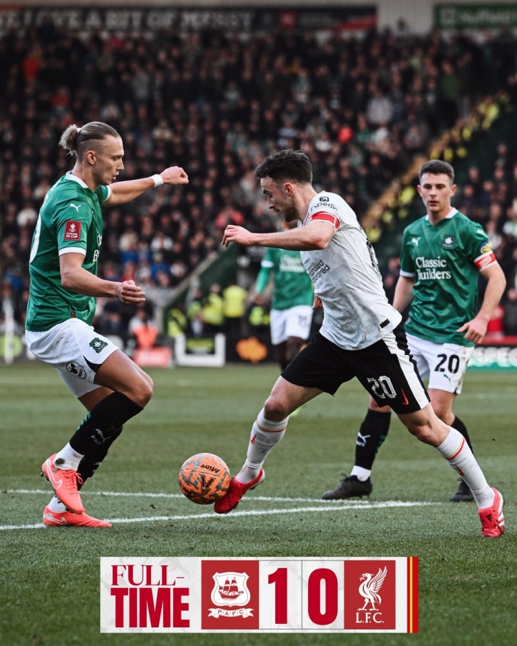 足總杯爆冷晉級(jí)!普利茅斯時(shí)隔69年再次擊敗利物浦