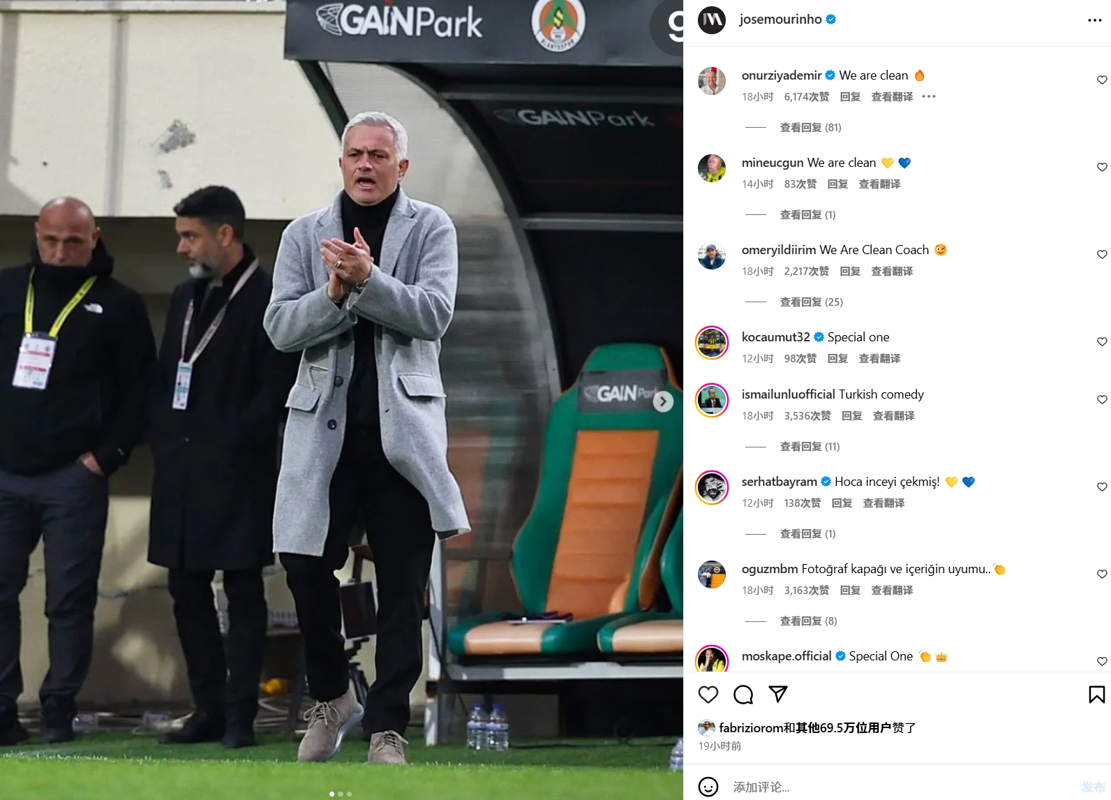 值得一提的是,穆帥沒(méi)有進(jìn)行配文,而在評(píng)論區(qū),球迷清一色的評(píng)論:“We are clean(我們是干凈的)?!?/p>