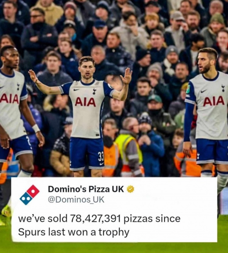 自熱刺上次贏得獎杯以來,我們已經售出了78427391個披薩~